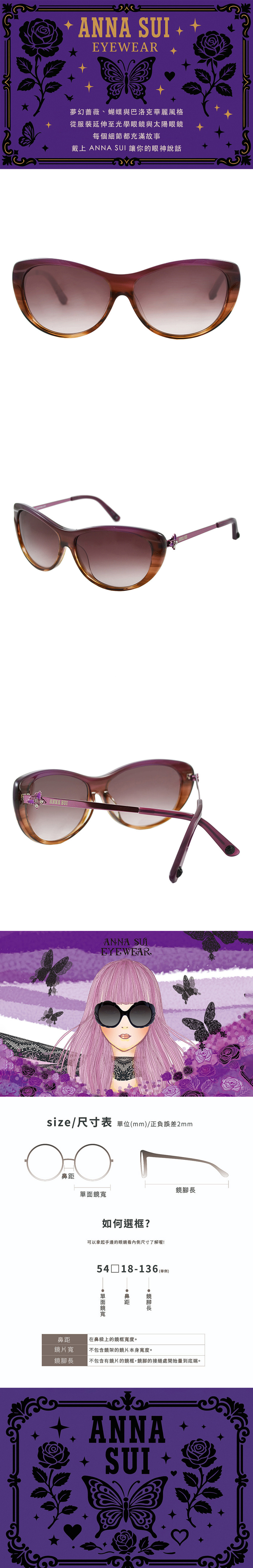 名稱:【ANNA SUI】安娜蘇 日式簡約晶鑽舞蝶太陽眼鏡(漸層紫) AS850-700