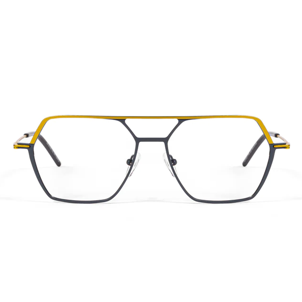 正面由整塊鈦合金銑削而成,塗有兩種顏色。鏡腿由 Beta 鈦片製成,無需任何焊接即可固定在前部。