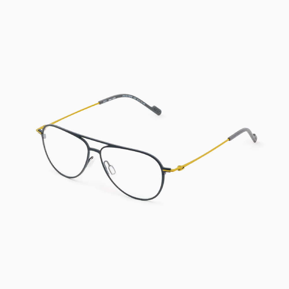 正面由整塊鈦合金銑削而成,塗有兩種顏色。鏡腿由 Beta 鈦片製成,無需任何焊接即可固定在前部。