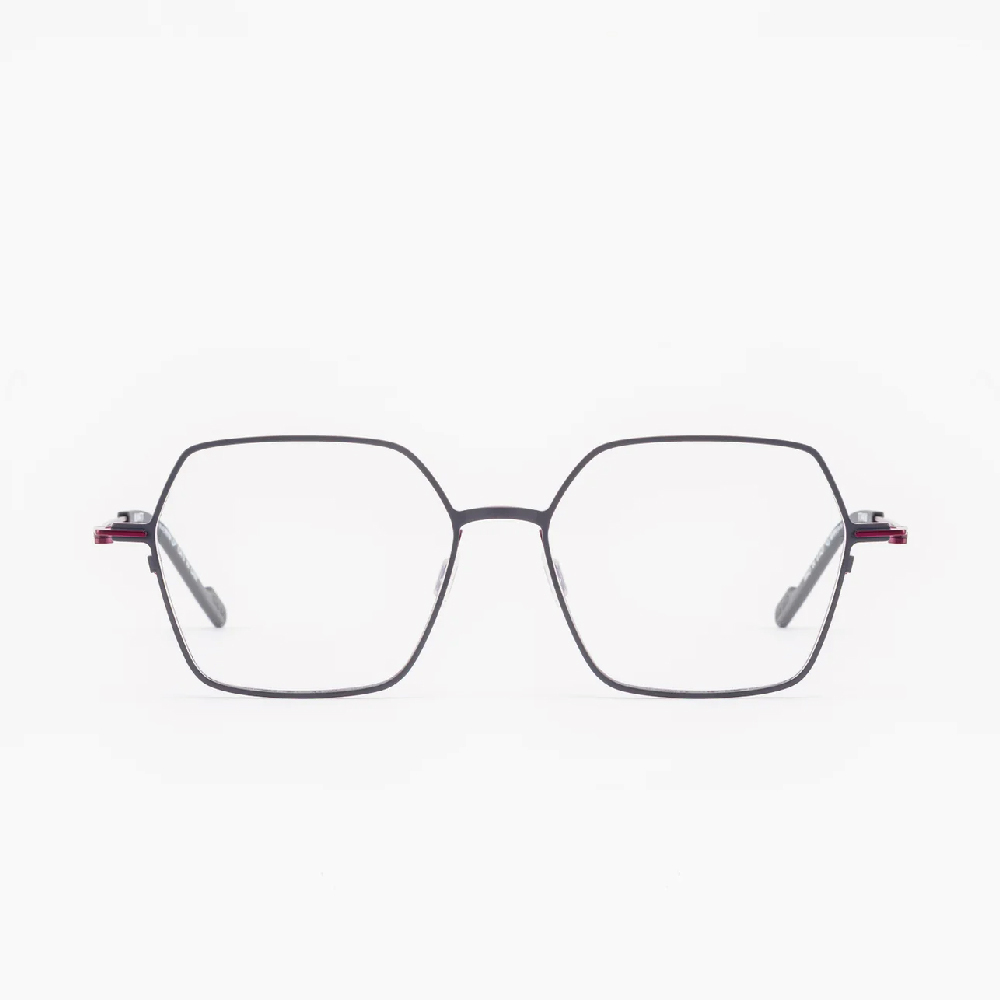 正面由整塊鈦合金銑削而成,塗有兩種顏色。鏡腿由 Beta 鈦片製成,無需任何焊接即可固定在前部。
